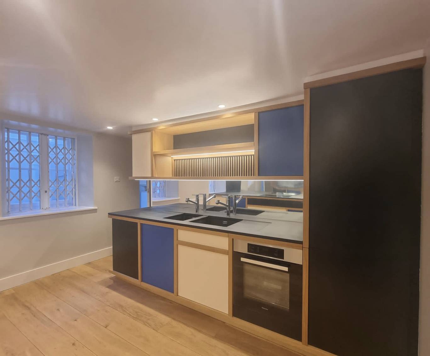 A ground floor refurbishment of a two bedroom house including a bespoke kitchen reconfiguration