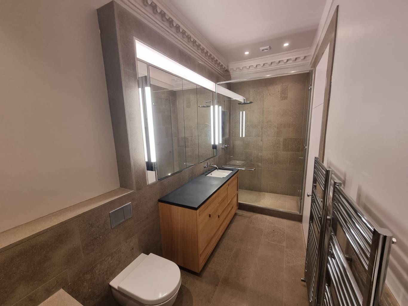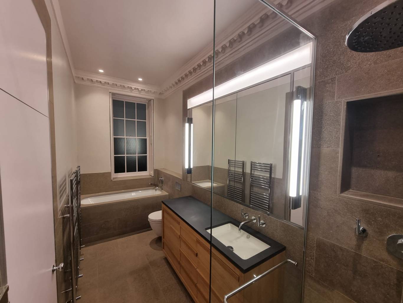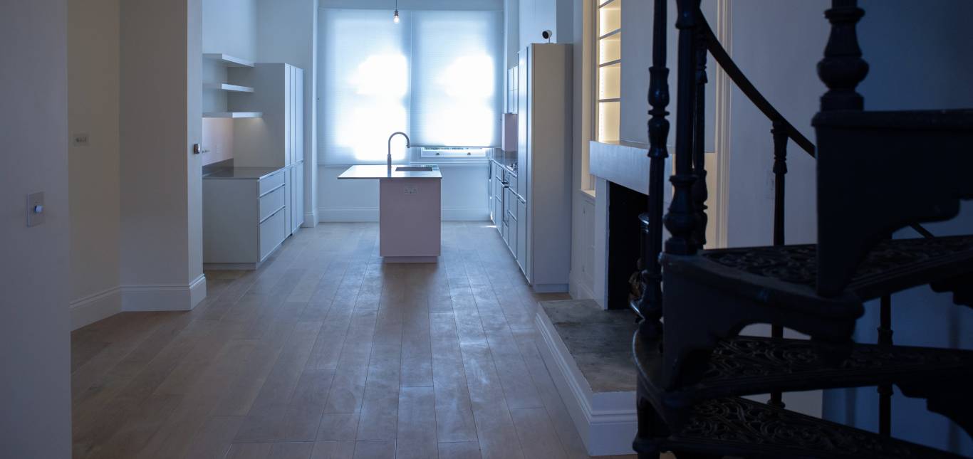 A full refurbishment of a 2 bedroom apartment in a grade II listed building. Modern and bespoke finishes throughout including major joinery works whilst preserving some of the original qualities of the building.