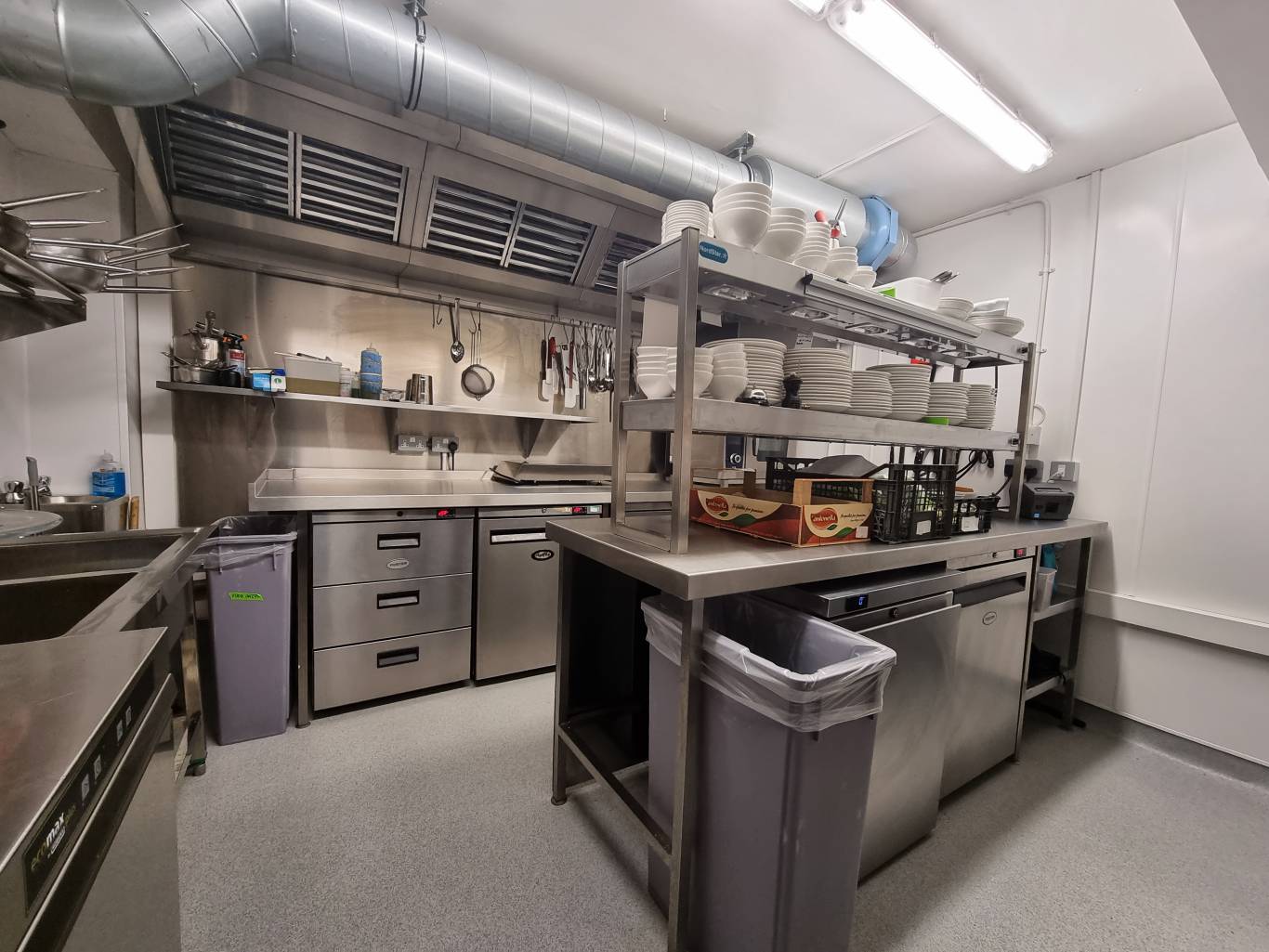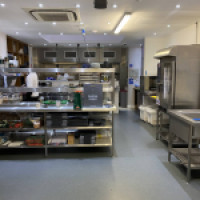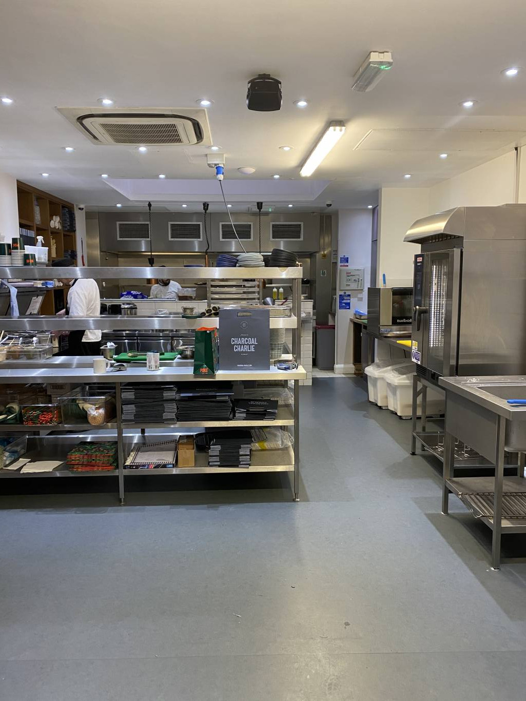 Reconfiguration of a two stories restaurant into a professional kitchen running on a self service system.